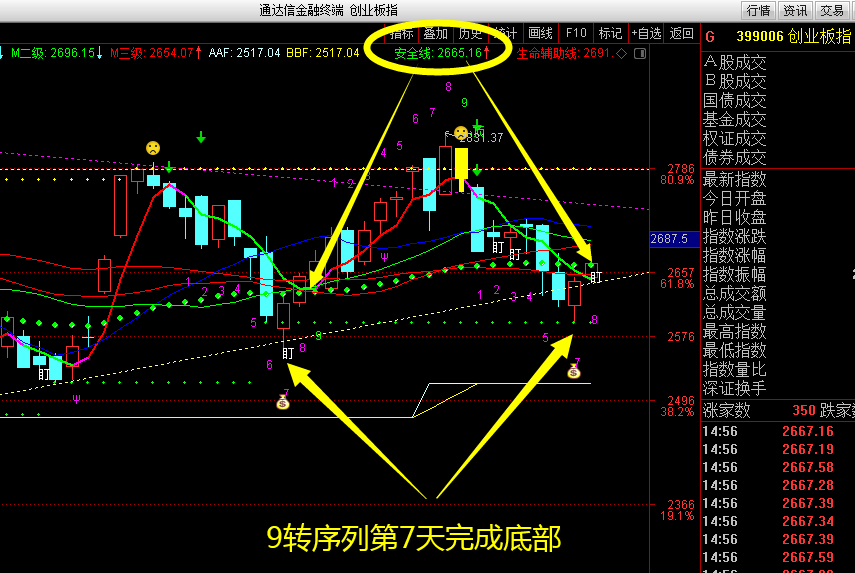 下周初,重点就还是看,能否继续复制10月末的反弹规律吧,9转第7天完成底部,第8天站回安全线,我们就等下周一第9天,看能否在安全线之上继续拉升吧。