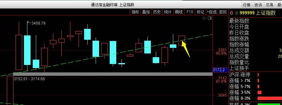 既然本周站上了趋势线,那下周就以趋势线作为回撤的临界点(3350-3360)来对待,不跌破的情况下,继续玩耍即可。就这么简单。