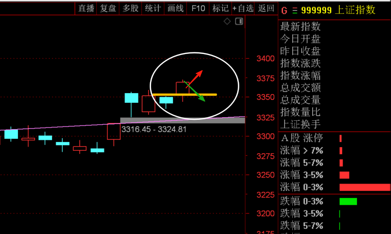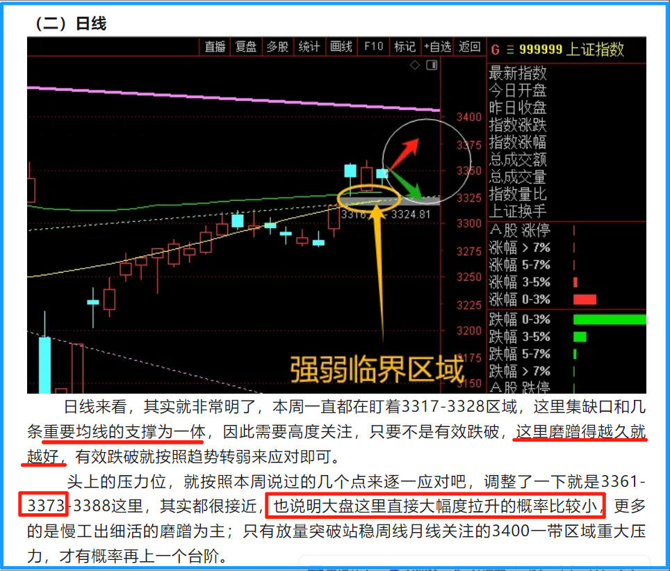 周末说到,盘面直接大幅拉升的概率低,更多是慢工出细活的走法,同时给出3316-3373-3388的小阶梯压力位。今天回头看,最高3372,基本卡在其中一个位置,同时也说明了确实没有大幅拉升,整体都很标准。