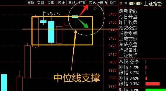回落下来,可以看看上周三到当下构筑箱体的中位线,大概是3441-3444位置,只要不是有效跌破这里,盘面就是很强势的走法,不用太担心,有效跌破就看底端3413-3417的支撑吧,短线这里不能有效跌破,不然就要整体控制仓位应对风险了。