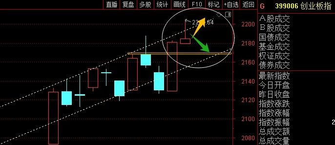 今天收盘回头看,创业板早盘是想直接冲高突破来着,但上证老大哥冲高回落,因此带着创业板也是冲高回落,突破未遂,又回到箱体内。
