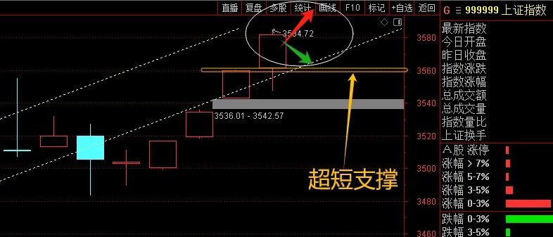 2、回落的位置,我们根据最近不断抬拉的行情,把支撑位也跟随着抬高。明天回落,重点就看3559-3565位置吧,这里能稳住,就依然看强势盘面,各种持仓玩耍走起;如果有效跌破,就需要防着超短的回落风险了。