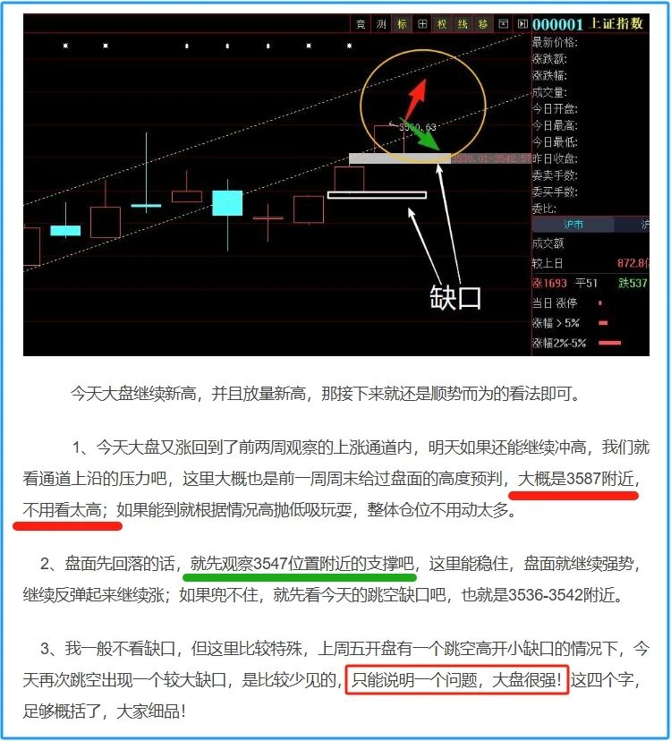 同时,今天盘中最低3547,就是昨天预判给的位置,精准!盘中最高3584,距离预判的3587位置还差丢丢,原谅这个小误差了!