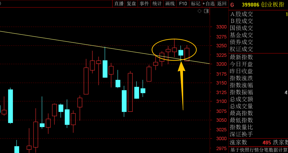 整体来看,创业板这里站上这个大的趋势压力位,已经连续5天了,算是挺强的,明儿收各个大线后再具体看看吧,细节上就不用纠结了。