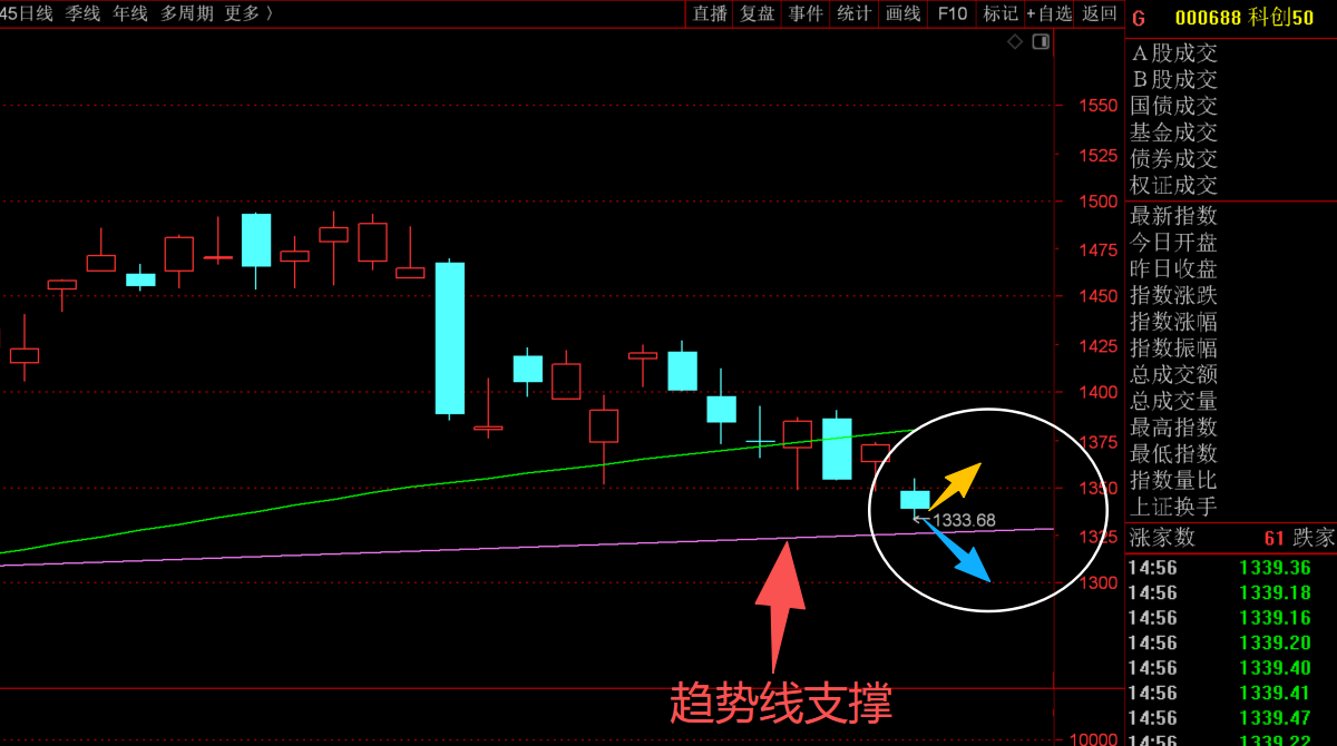 昨天说到,科创走得比较忽悠,比较恶心人,要摸清楚套路才好下手,再回落就看1333-1341位置能到到达,才好继续动手,不然都不要瞎搞。